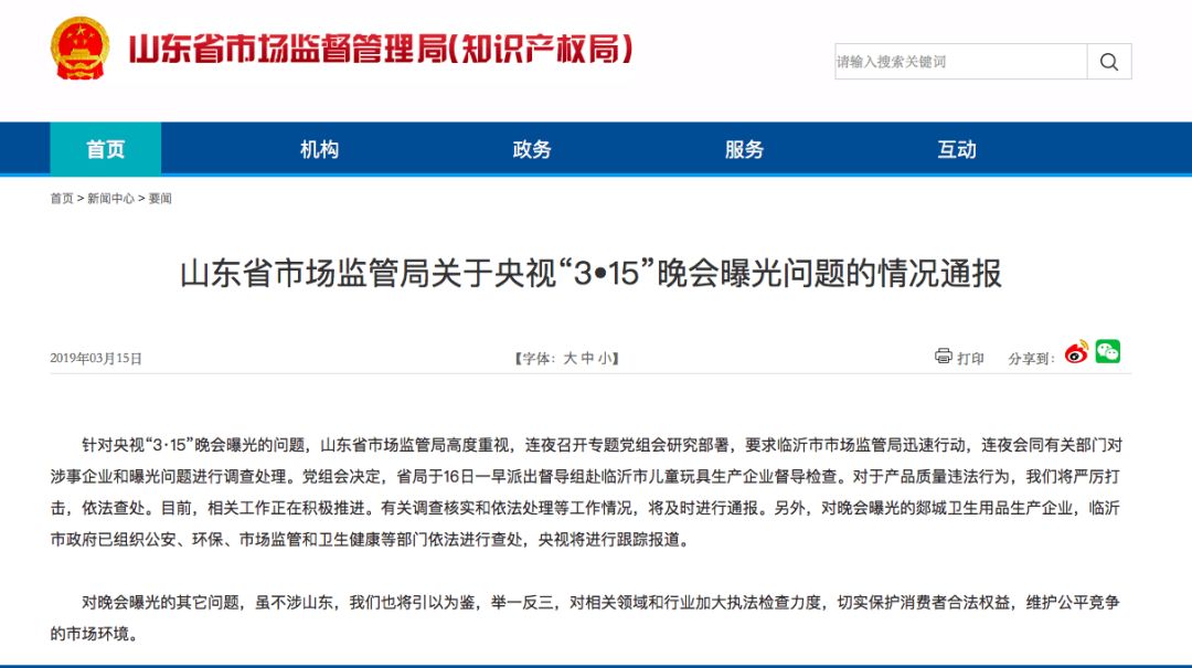 山東連夜調(diào)查處理“3?15”晚會曝光問題