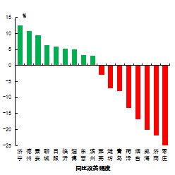 7市均未出現(xiàn)重污染天氣。14市同比減少,減少幅度最大的是濟(jì)寧市,為4天;青島等3市同比持平。