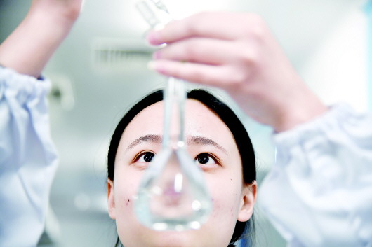 圖②:在齊魯制藥有限公司濟(jì)南高新制劑分廠質(zhì)控實(shí)驗(yàn)室,工作人員進(jìn)行檢測(cè)工作。(新華社發(fā))