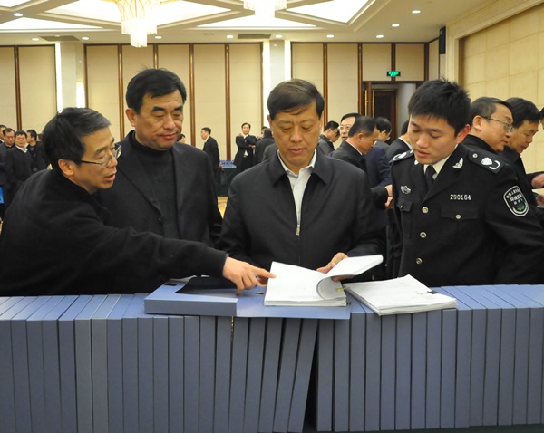 2017年以來(lái),山東省借力環(huán)保督察,層層傳導(dǎo)壓力,狠抓責(zé)任落實(shí),攻堅(jiān)整治環(huán)保突出問(wèn)題,促進(jìn)環(huán)境質(zhì)量持續(xù)改善。圖為山東省環(huán)保廳廳長(zhǎng)王安德(中)在濟(jì)寧市調(diào)閱督察檔案,了解地方環(huán)境執(zhí)法規(guī)范化建設(shè)情況。