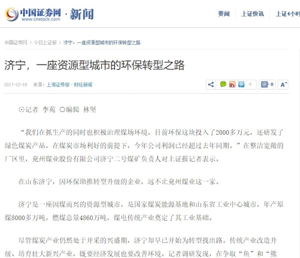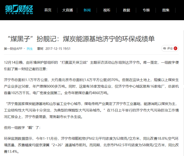濟寧是國家煤炭能源基地和山東省工業(yè)中心城市,煤電傳統(tǒng)產(chǎn)業(yè)奠定了濟寧市工業(yè)基礎,能源消耗以煤炭為主,工業(yè)結構性大氣污染十分突出,為典型的煤煙型大氣污染城市。那么,“煤黑子”是如何扮靚的?第一財經(jīng)網(wǎng)以《“煤黑子”扮靚記:煤炭能源基地濟寧的環(huán)保成績單》為題,進行了采訪報道。