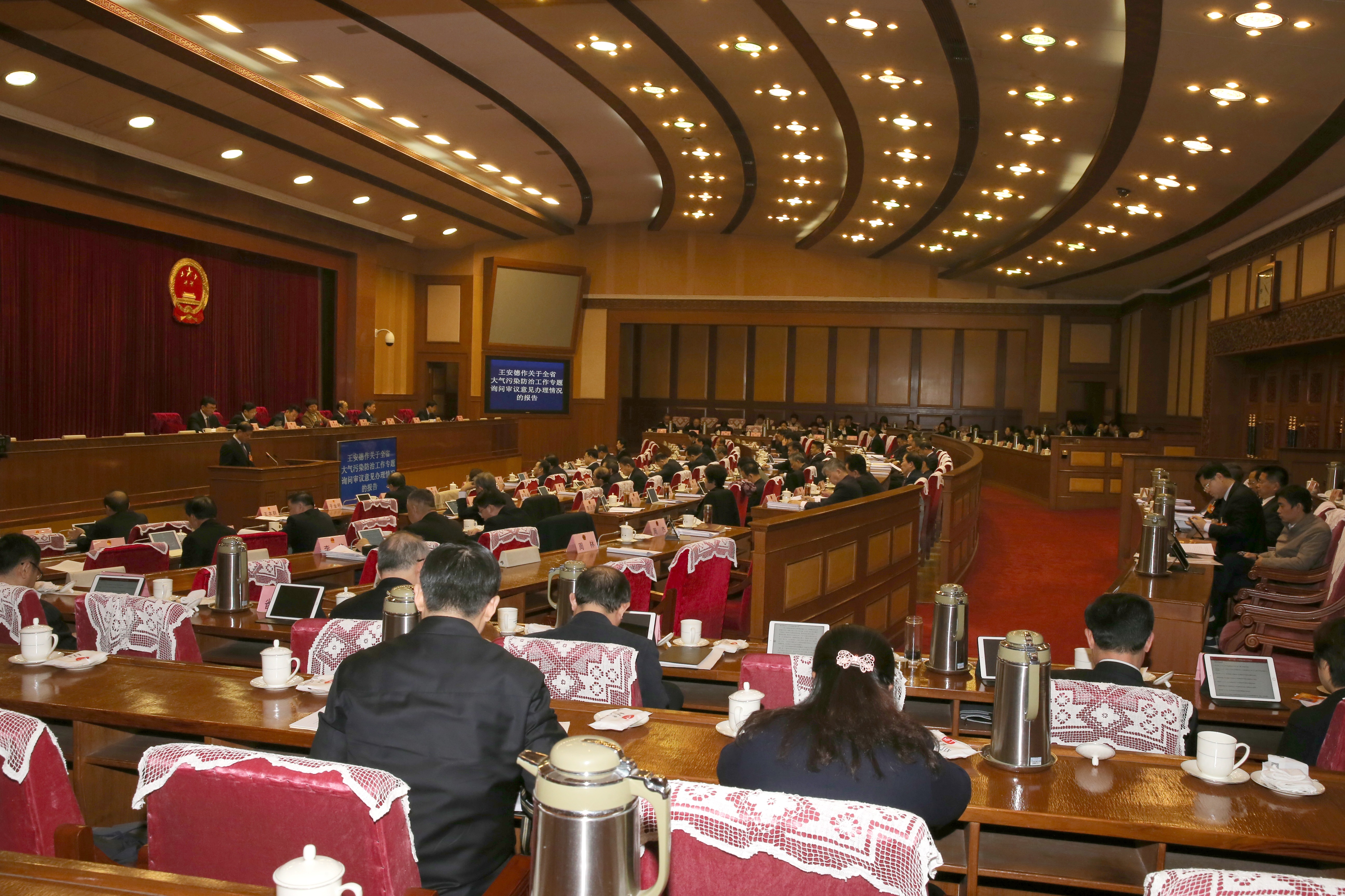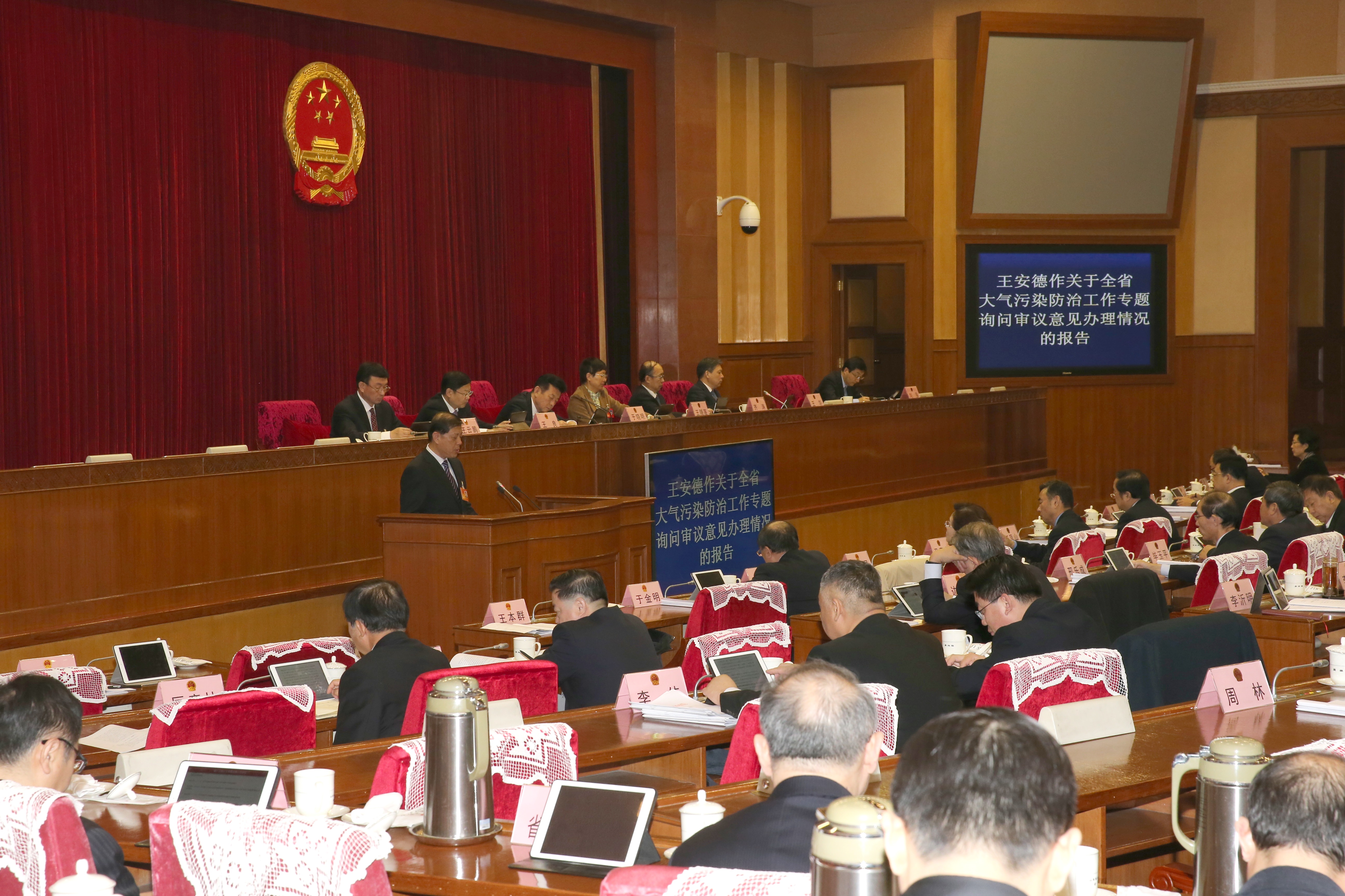 2018年11月27日,省十三屆人大常委會召開第七次會議。受省政府委托,省生態(tài)環(huán)境廳廳長王安德同志向會議作《關(guān)于全省大氣污染防治工作專題詢問審議意見辦理情況的報(bào)告》。